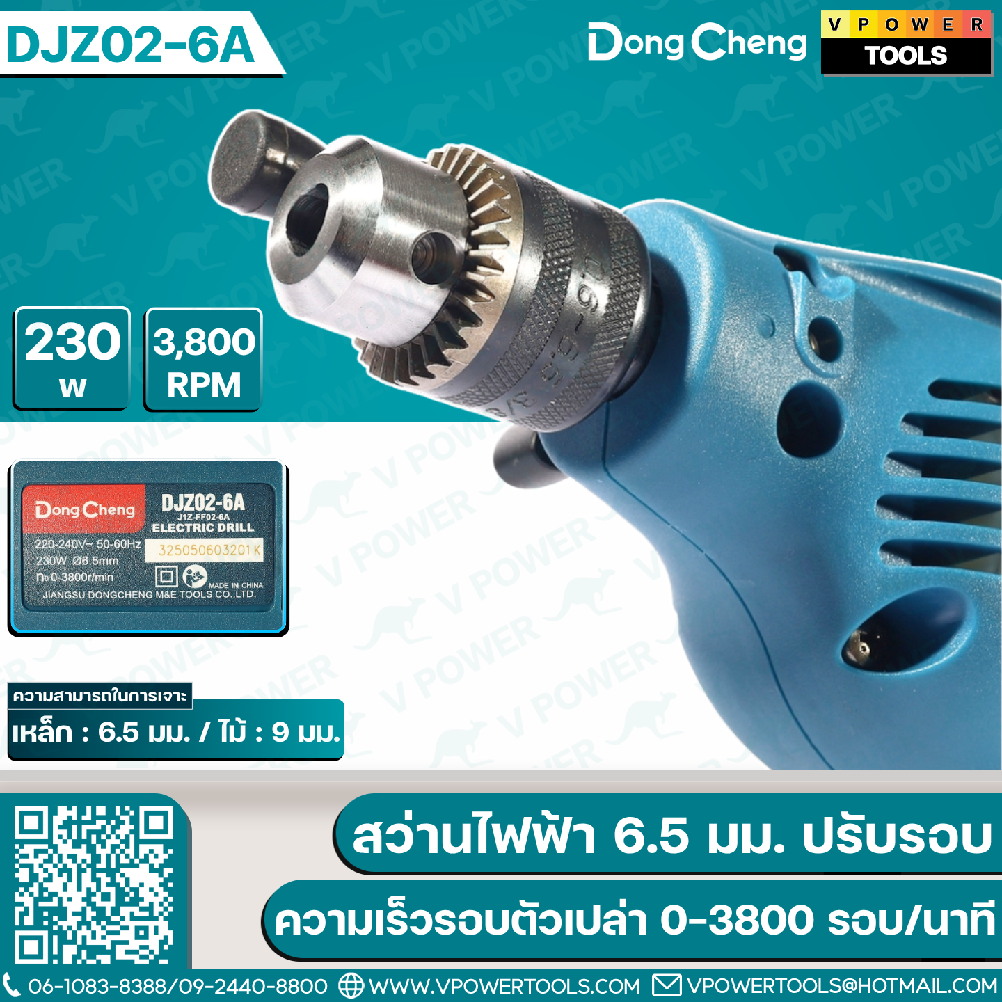 DONG CHENG สว่านไฟฟ้า 6.5 มม. ปรับรอบ กำลังไฟ 230 วัตต์ รุ่น DJZ02-6A