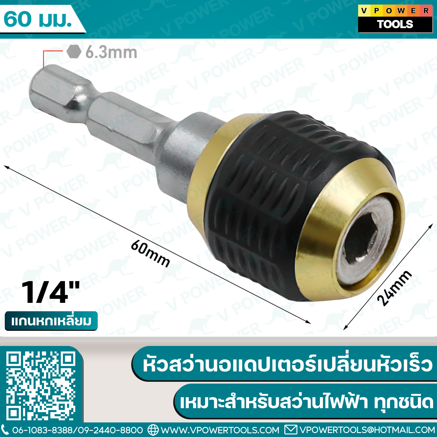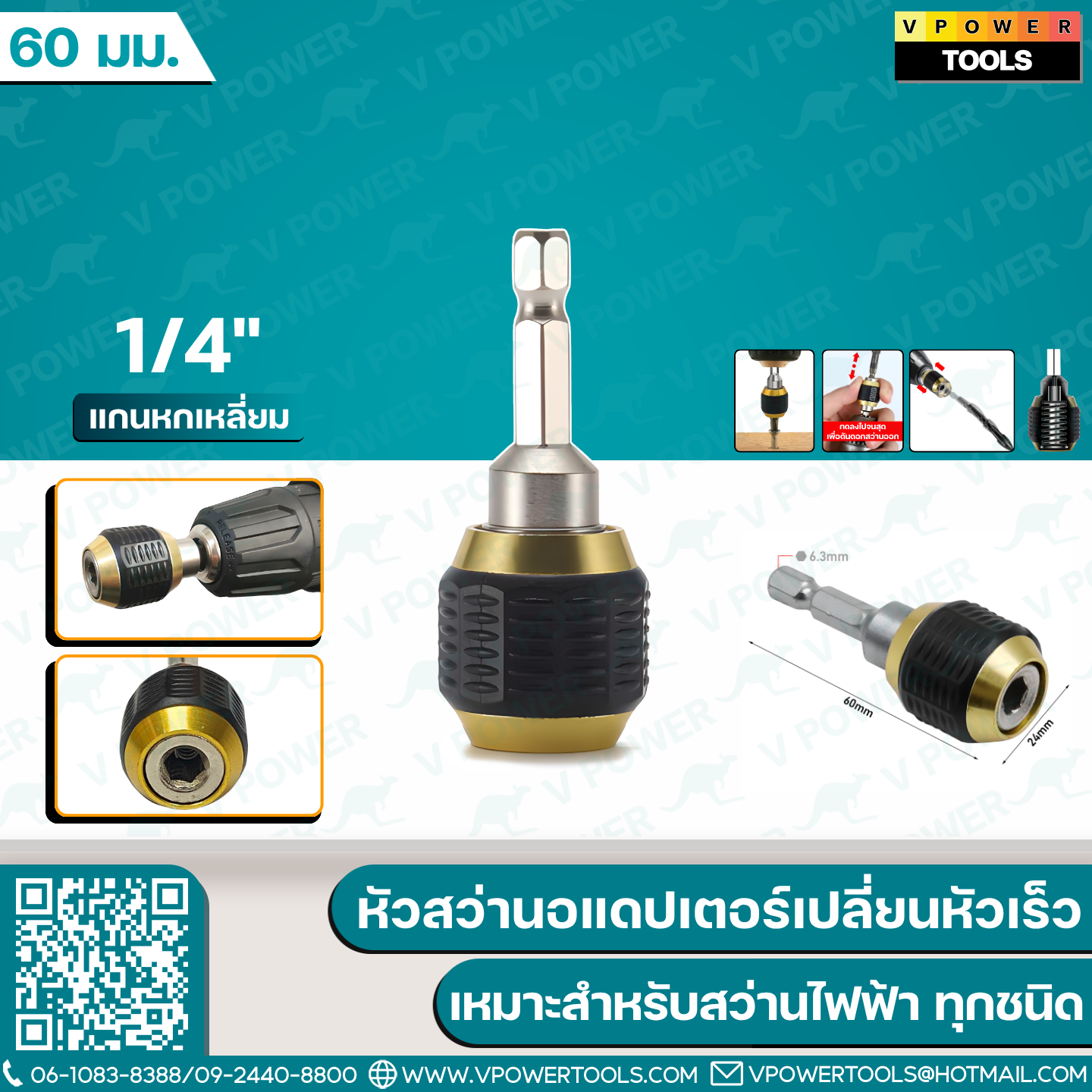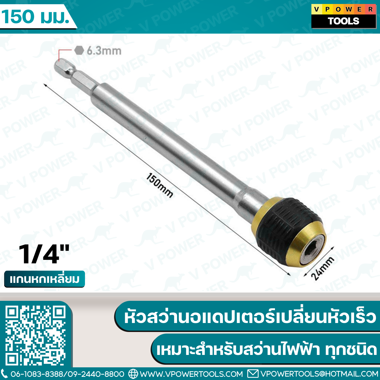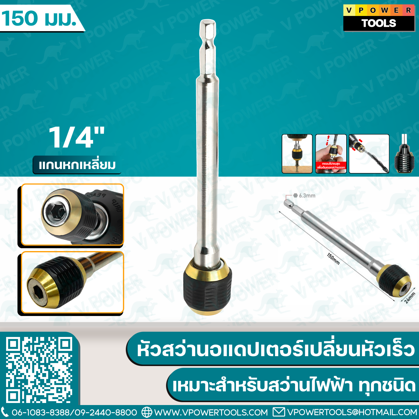 หัวสว่านอแดปเตอร์เปลี่ยนหัวเร็ว ด้ามจับหกเหลี่ยม แกนหกเหลี่ยม 1/4" แบบสวมเร็ว สะดวกรวดเร็ว
