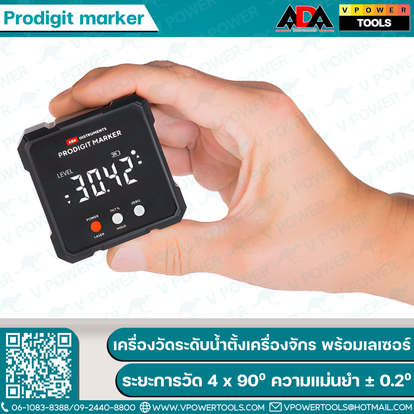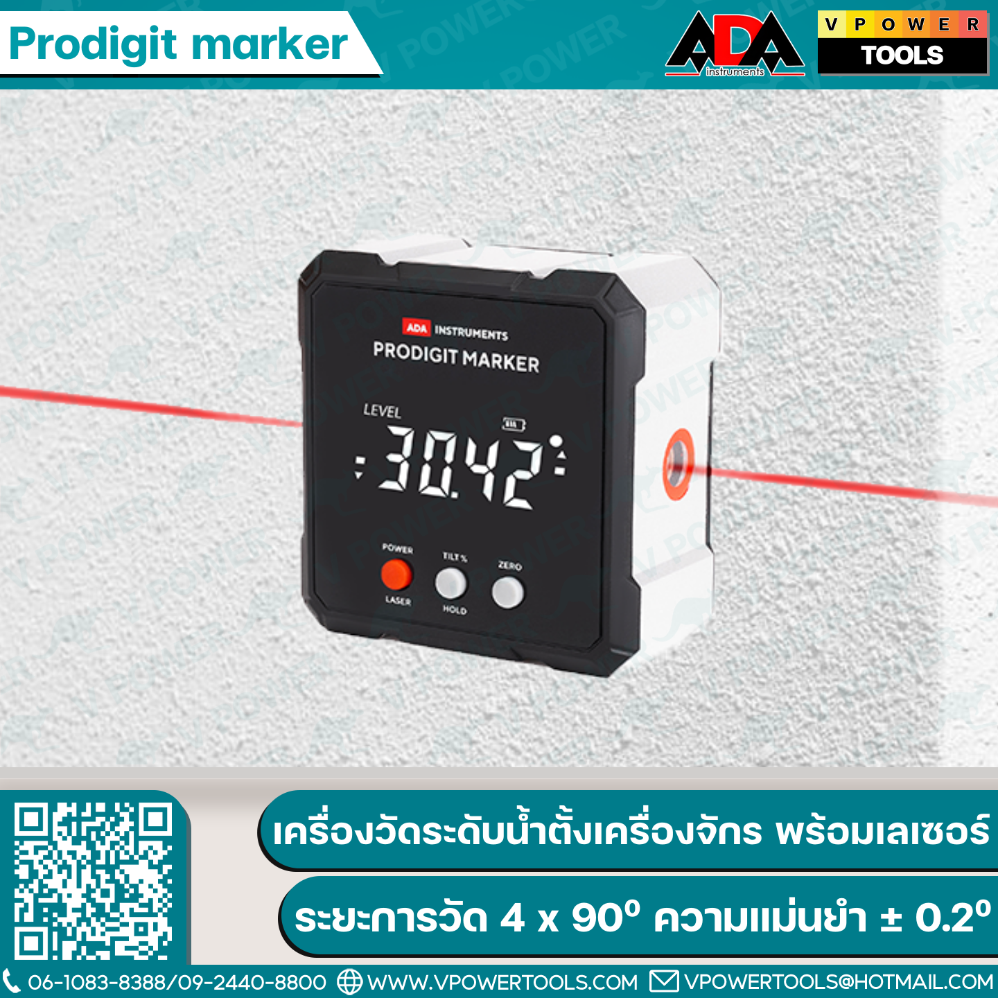ADA เครื่องวัดระดับน้ำตั้งเครื่องจักร ระยะทำงาน 4x90° พร้อมเลเซอร์สองฝั่ง รุ่น PRODIGIT MARKER