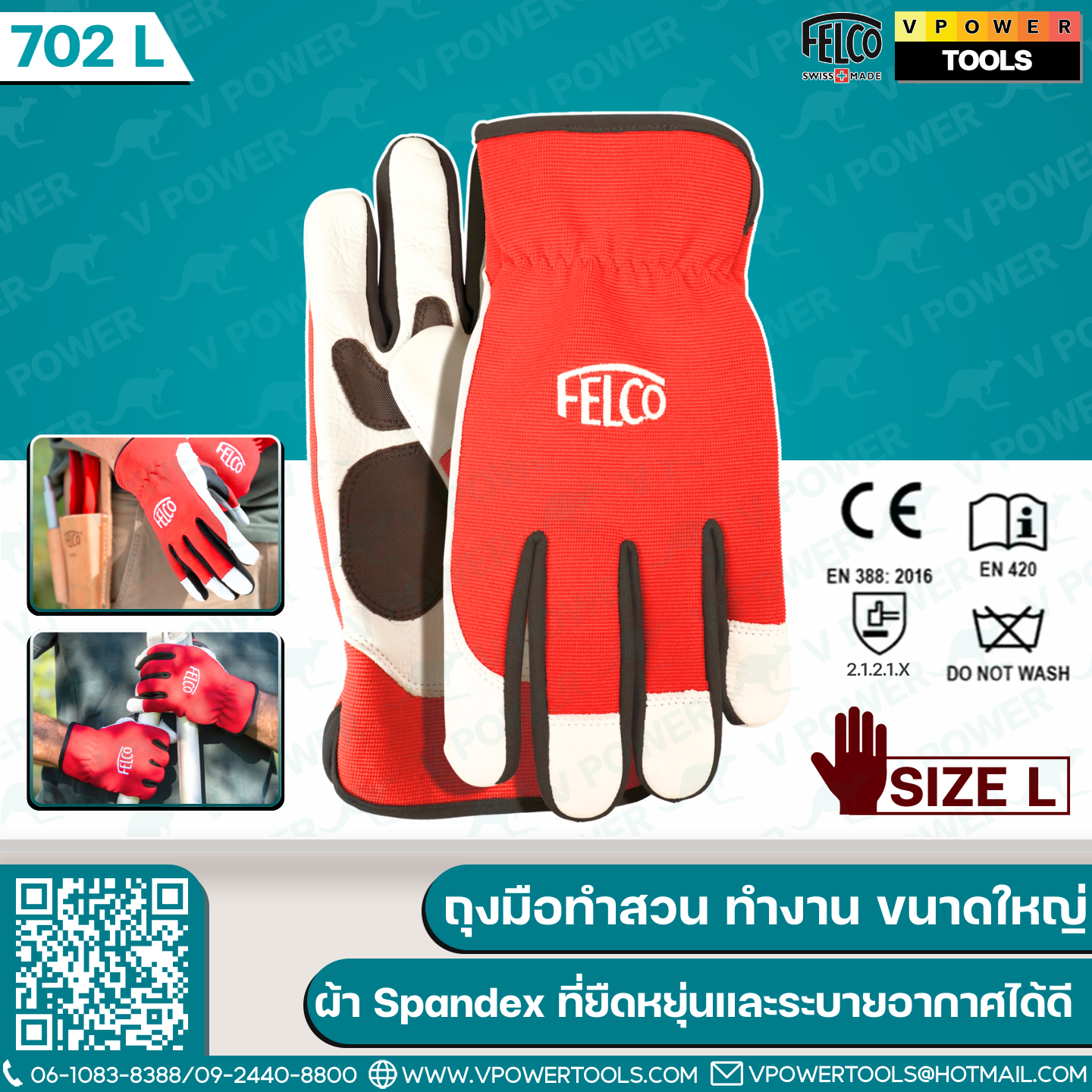 FELCO 702L ถุงมือทำงานขนาดใหญ่ ผ้า Spandex ยืดหยุ่นและระบายอากาศได้ดี ไซส์ L
