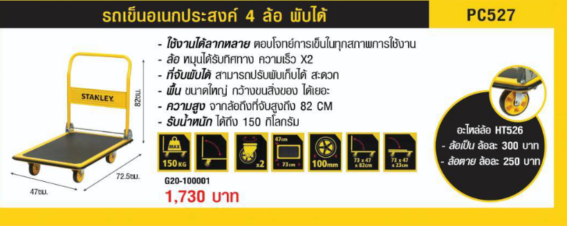 Stanley รถเข็นอเนกประสงค์ 4ล้อ พับได้ รุ่น PC527