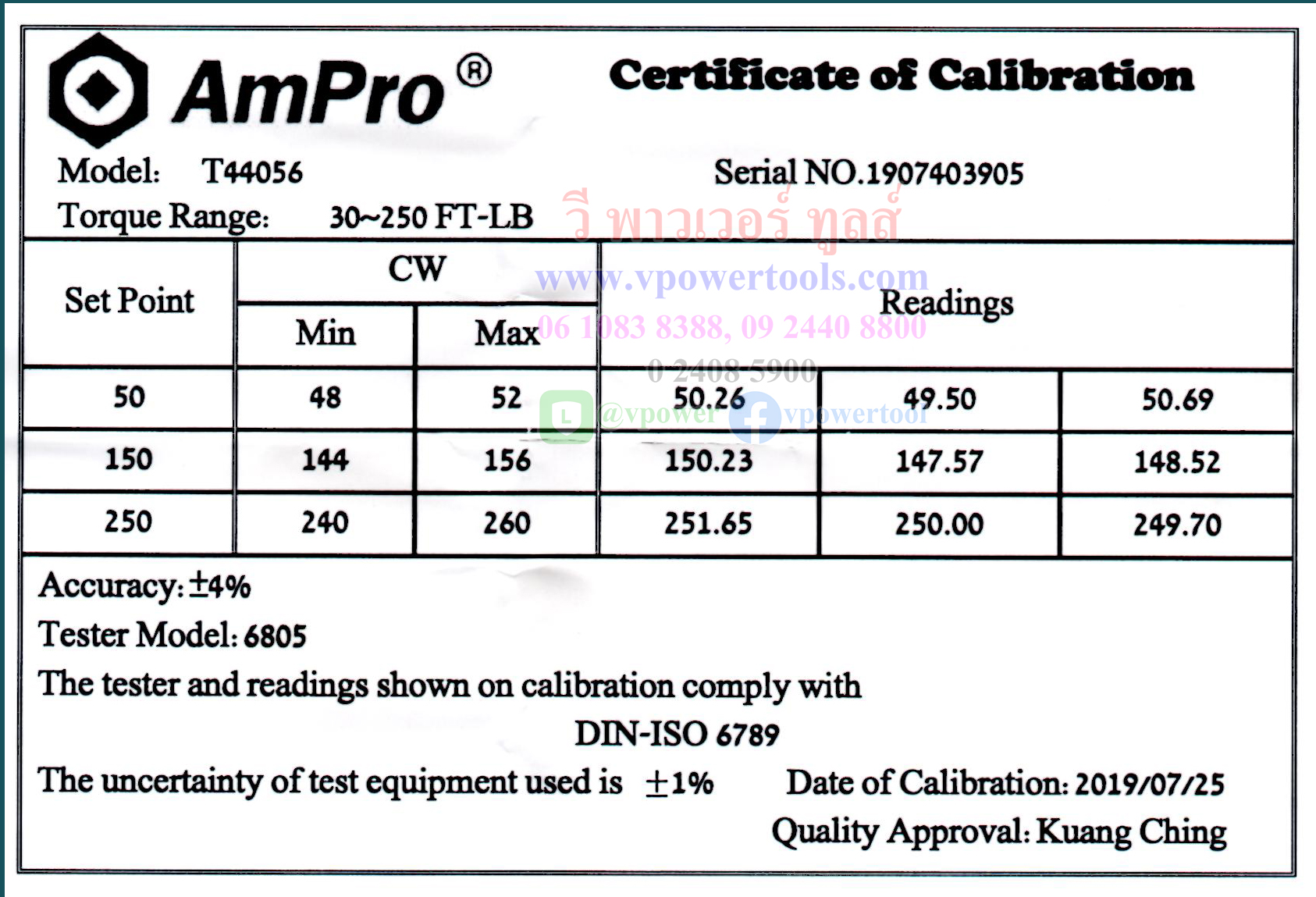 AmPro ด้ามขันปอนด์ (ประแจวัดแรงบิด) พร้อมใบรับรองจากโรงงานผู้ผลิต