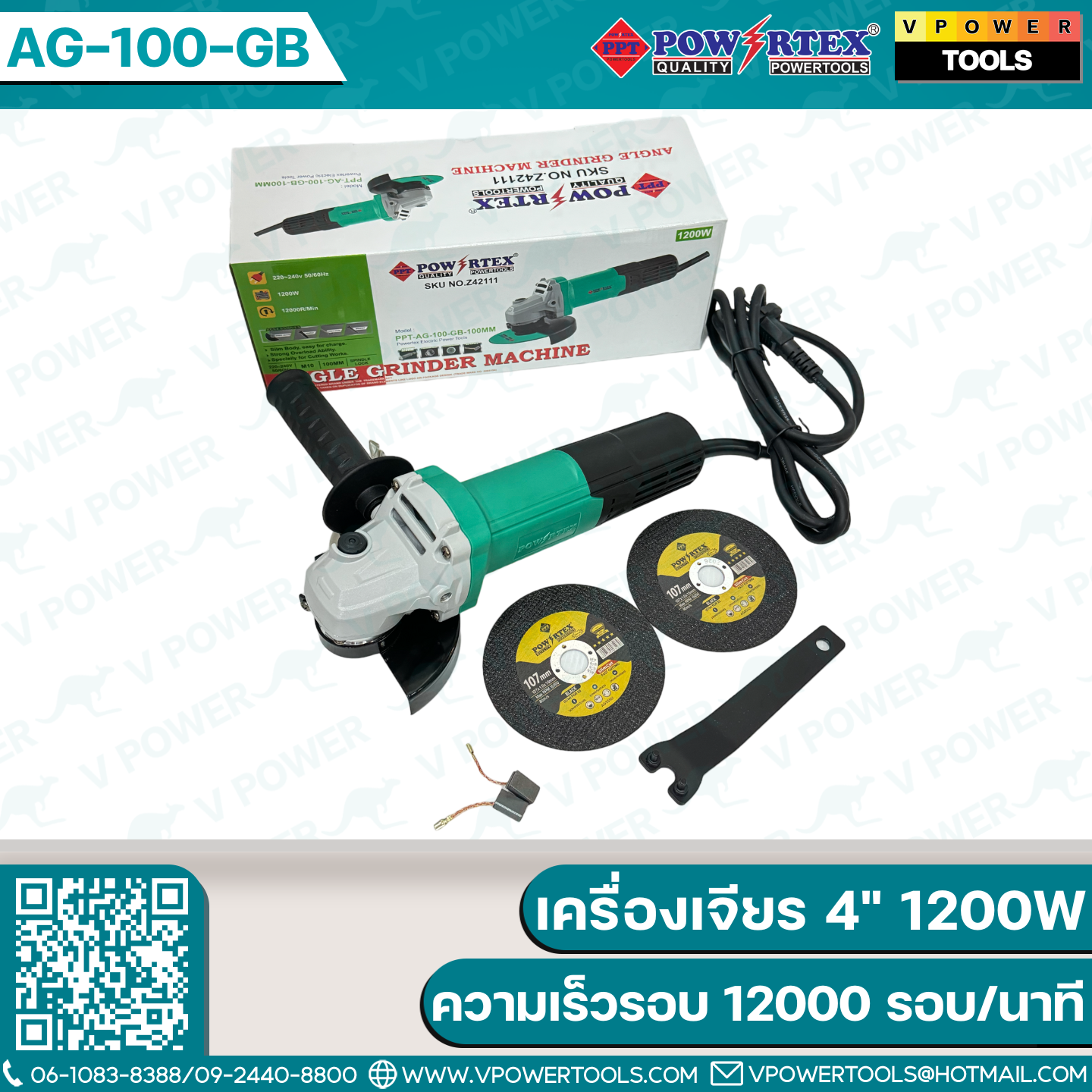 Powertex เครื่องเจียร 4นิ้ว วัตต์สูง มี 4 รุ่น (เลือกด้านใน) รับประกัน 1ปี ตามเงื่อนไขผู้นำเข้า (จากประเทศอินเดีย)